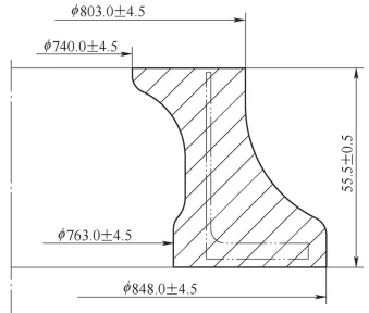 This creates a slight interference fit with the part’s inner bore design dimension of φ(781.30 ± 0.15) mm, ensuring the required fitting accuracy after assembly.